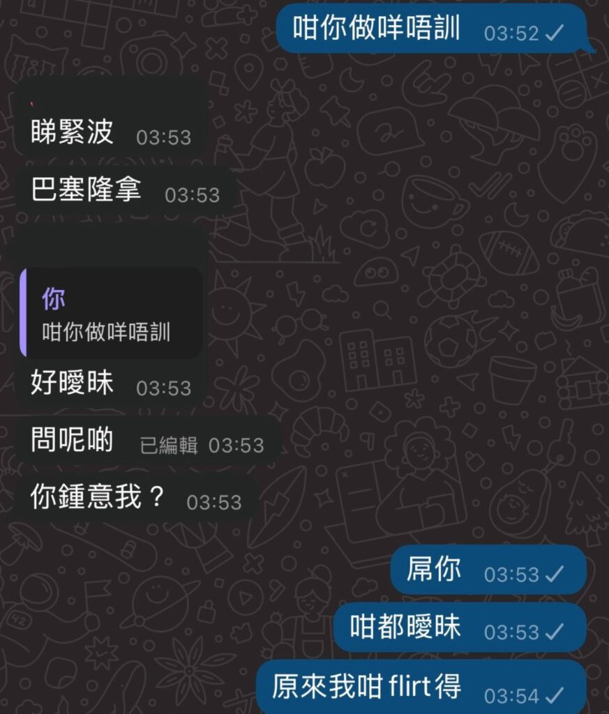 最近,Peter 開始會問:「你點解成日咁忙,WhatsApp 成日 last seen 唔係喺我度?」而 Sam 又笑我:「你係咪又同嗰啲安全牌男人出街?」